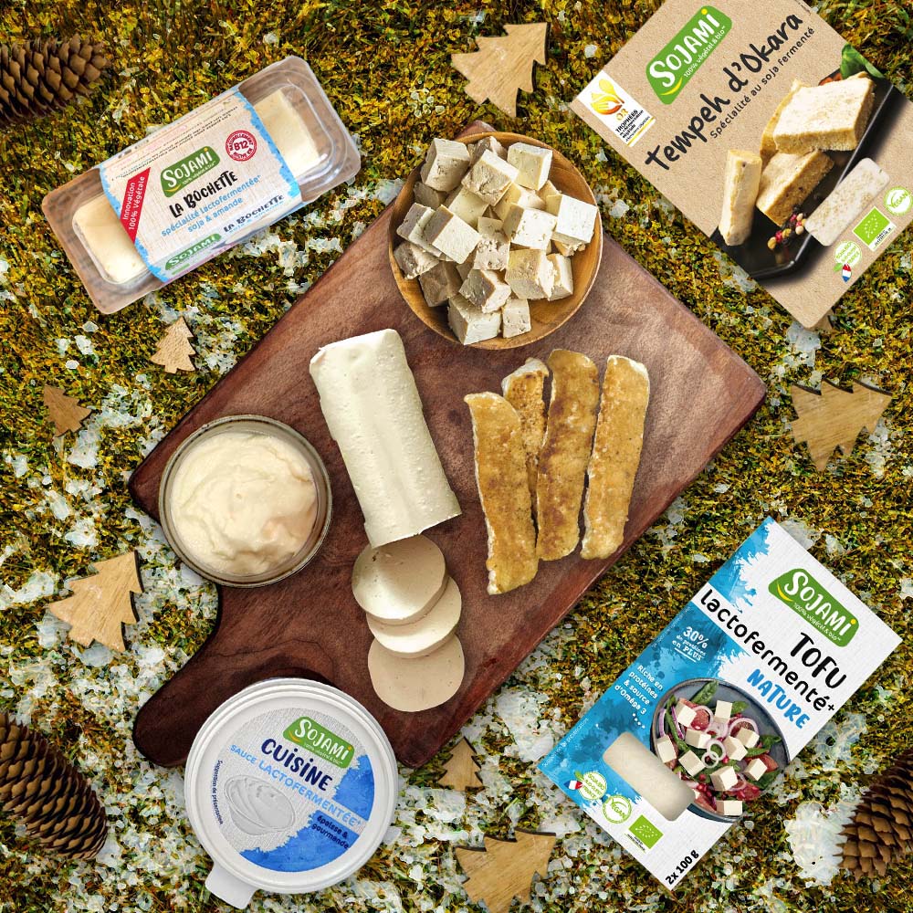 (La Box « de Saison » comprend 4 produits : 1 Bûchette Lactofermentée soja & amande Nature, 1 Tempeh d’Okara, 1 Tofu Lactofermenté Nature, 1 Sojami Cuisine).